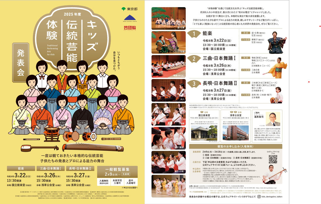 「キッズ伝統芸能体験」事務局 TEL : 03-5909-3060(平日11:00~17:00)